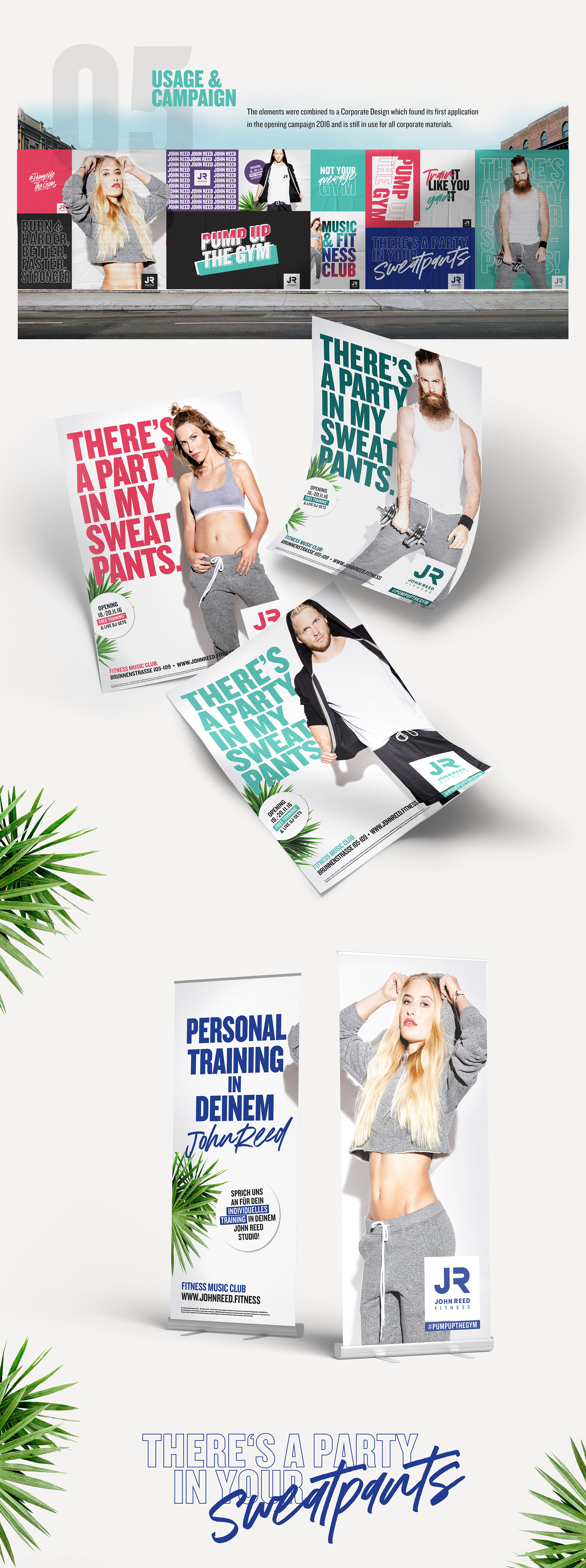 Launch campaign and corporate design for John Reed Fitness Music Club: Fitness Power House McFIT gave birth to a new brand combining fitness and music––which of course immediately screamed for a visual identity.
