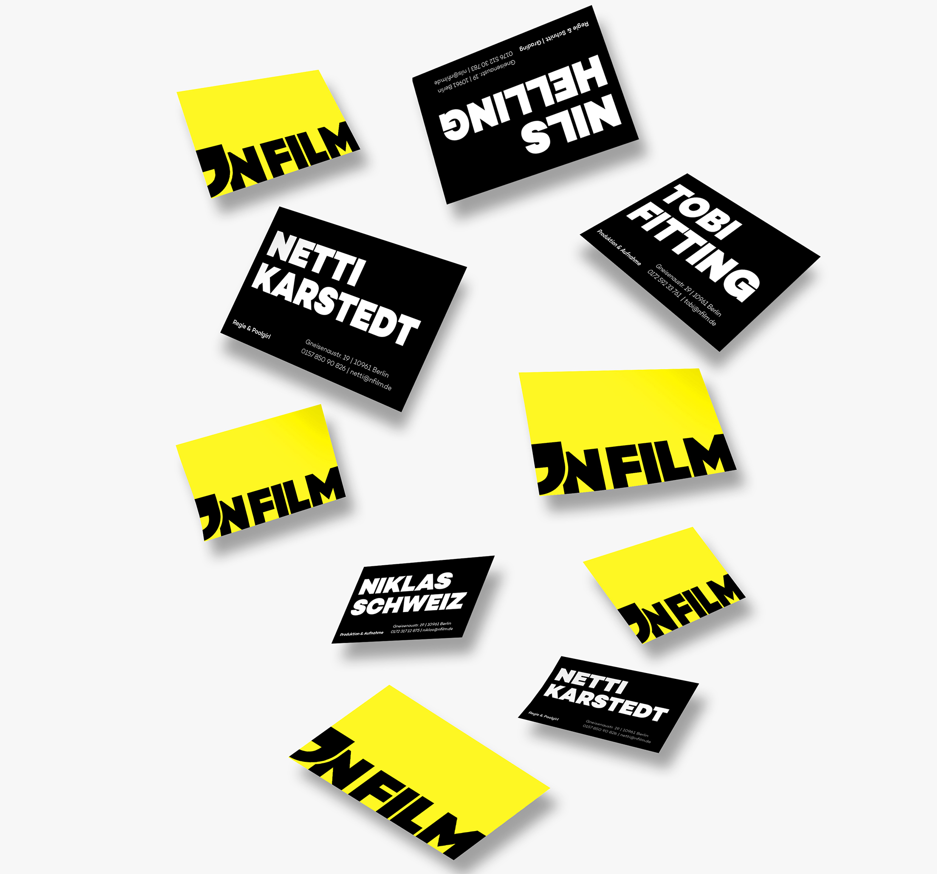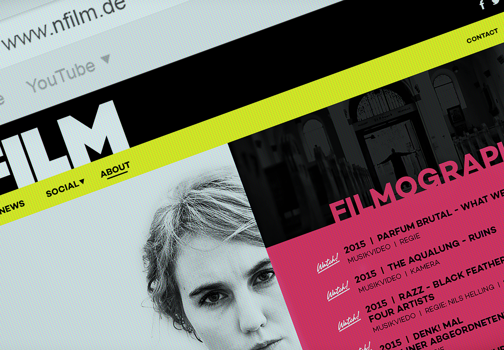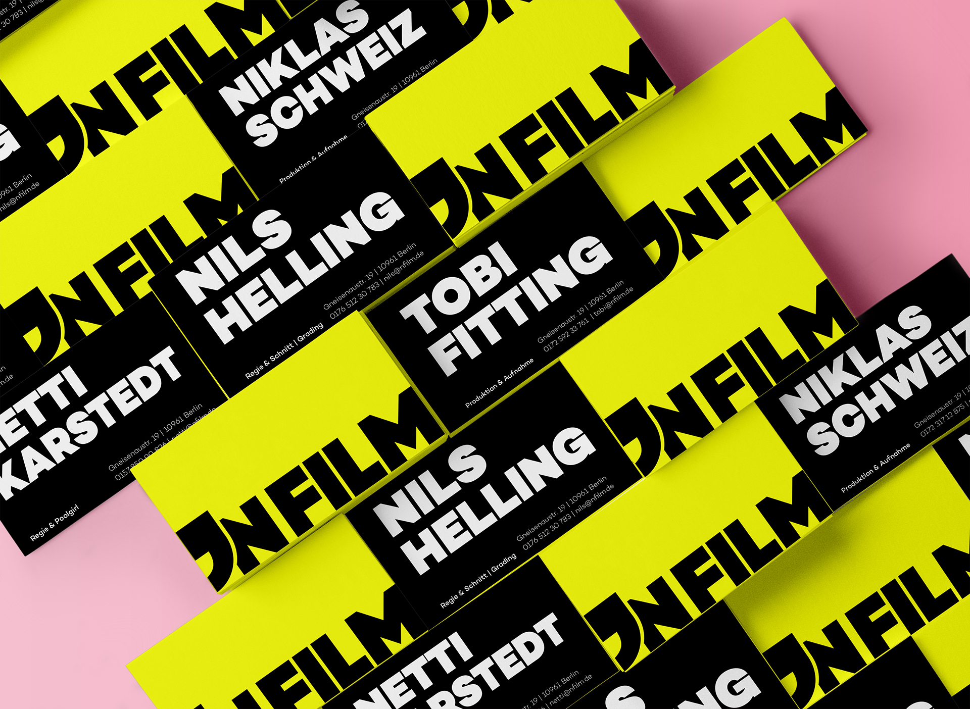 Development and Design of a Corporate Identity (including Website) for the newly founded “nfilm” Production Company from Berlin. The aim was to express their „Kreuzberger roughness“ on one hand, and their professionalism on the other through their Visual Identity.