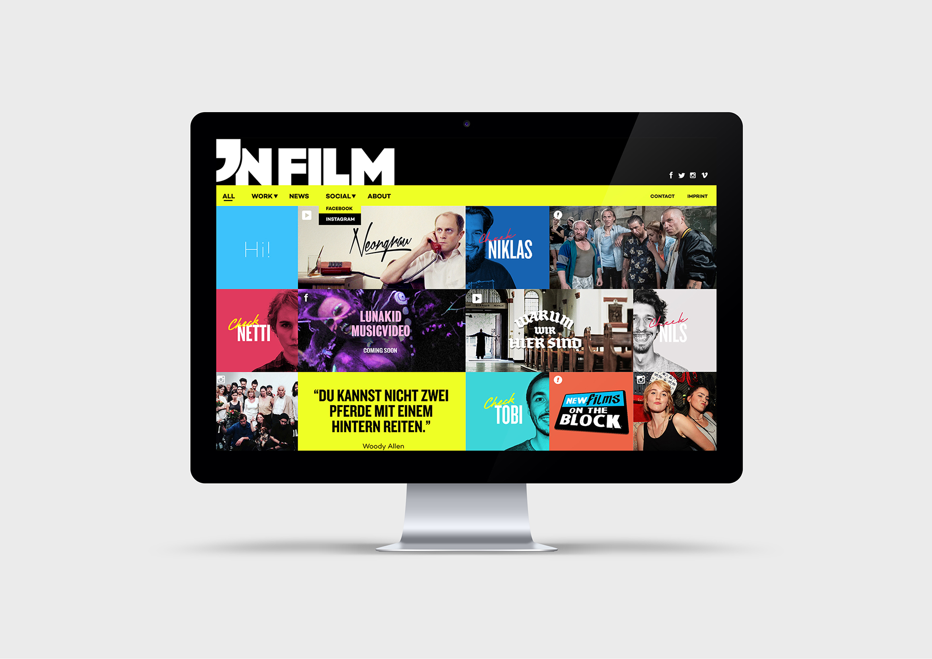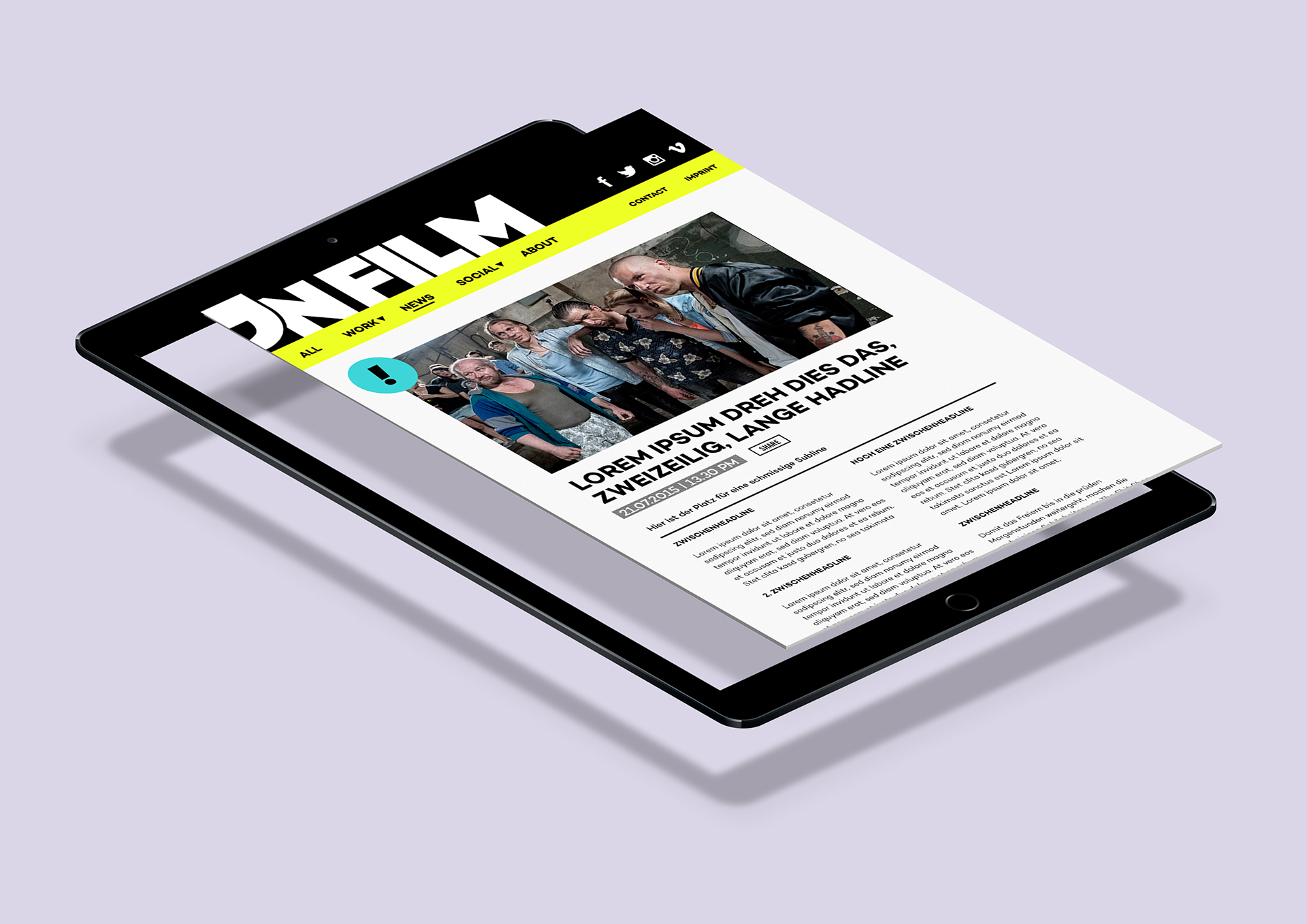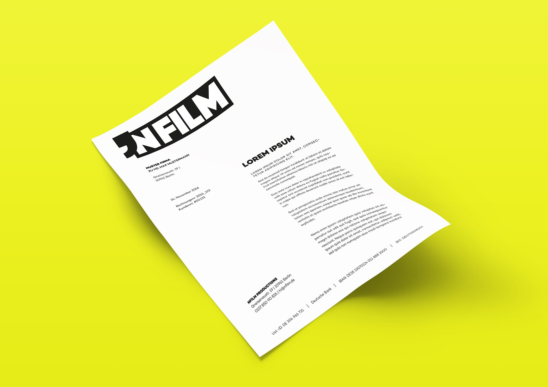 Development and Design of a Corporate Identity (including Website) for the newly founded “nfilm” Production Company from Berlin. The aim was to express their „Kreuzberger roughness“ on one hand, and their professionalism on the other through their Visual Identity.
